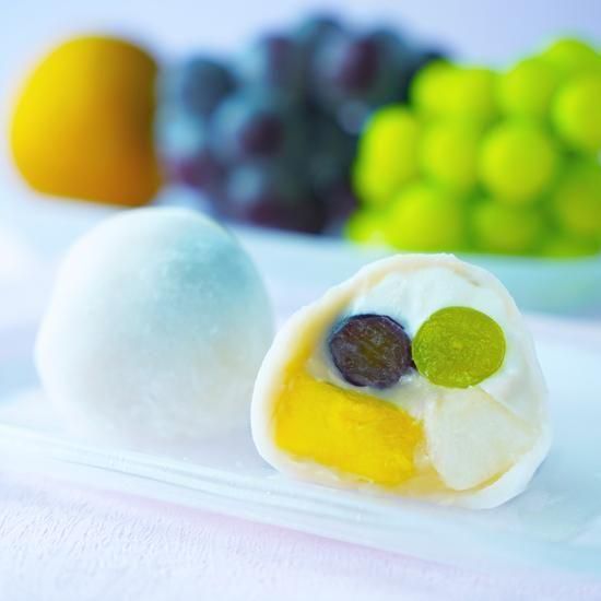 梨・パイナップル・キウイ・ブルーベリーの4種のフルーツにクリームチーズを入れ、ミックス大福に仕上げています。